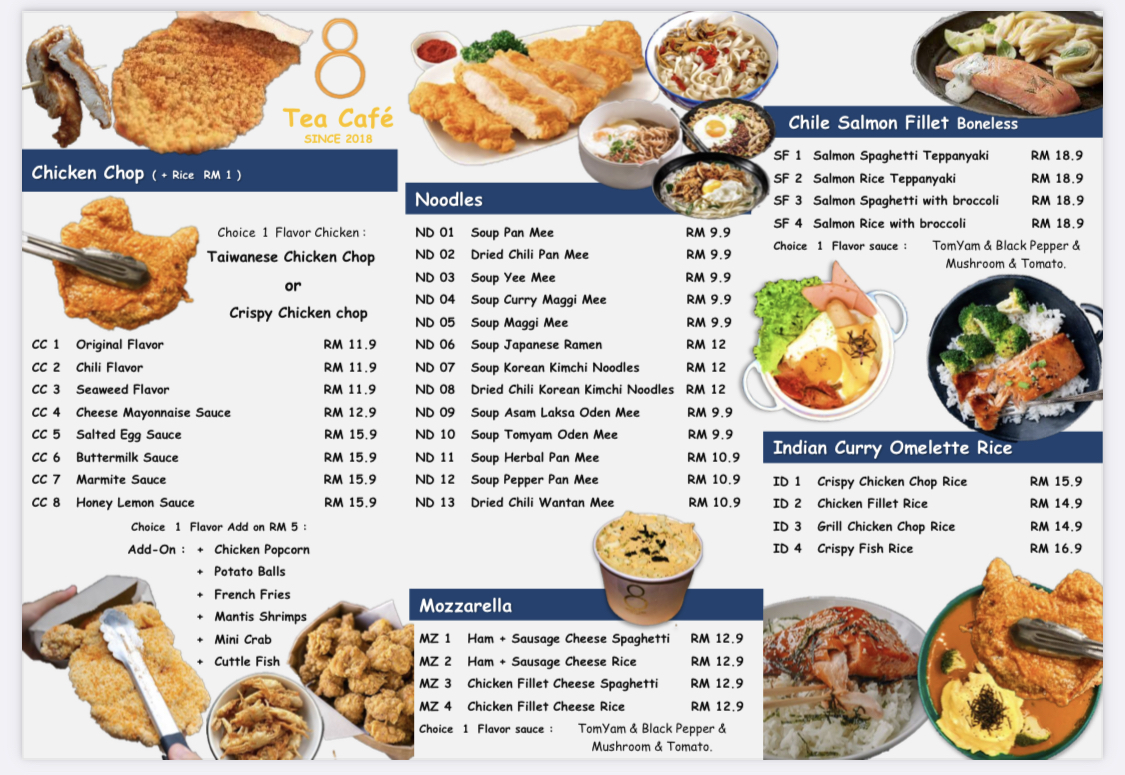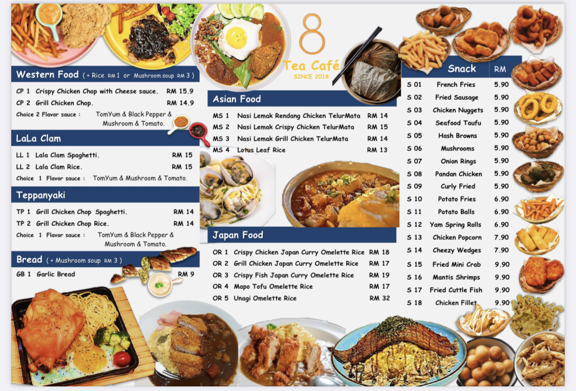 Welcome to 8 Tea Cafe, a delightful gem nestled at A6, Jalan Pejabat Pos, Sekinchan, Malaysia. This quaint cafe offers a welcoming atmosphere perfect for gatherings with friends and family. Renowned for its generous portions and affordable prices, 8 Tea Cafe serves an enticing menu that balances flavor and value.